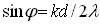 Вопрос №16 Если на дифракционную решетку с периодом d нормально к ее поверхности падает свет с длиной волны , то угол, определяющий направление на дифракционный максимум, можно найти из соотношения вида (из ниже приведенных формул выберите правильную).